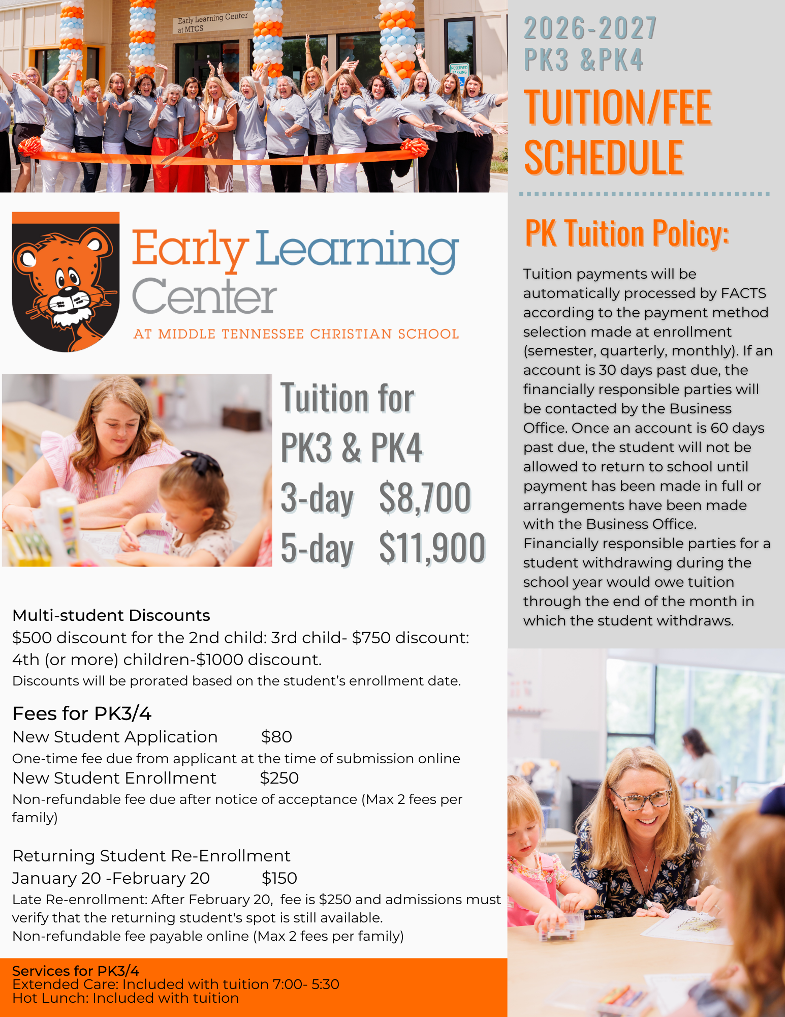 - Full-Day PK3 and PK4: $11,900 (for August – May)